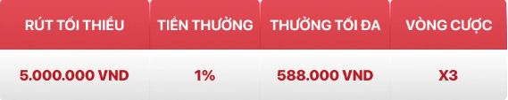 - Ví dụ: Bạn rút thành công 5.000.000 VND về tài khoản Crypto thành công nhận được 50.000 VND