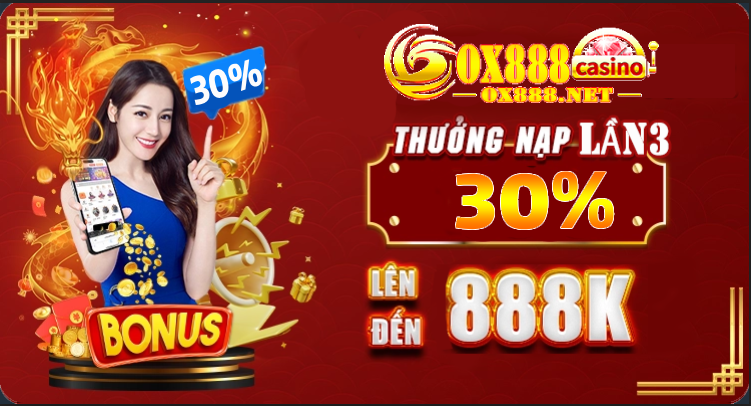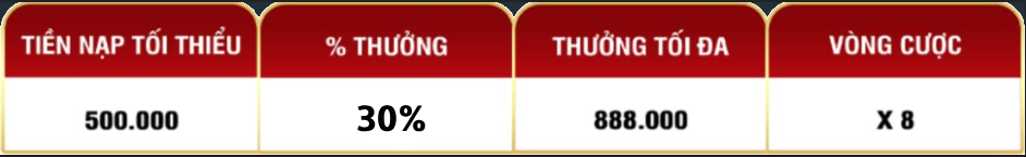 THÀNH VIÊN MỚI THAM GIA NHẬN NGAY 30% THƯỞNG NẠP LẦN 3 LÊN ĐẾN 888K
