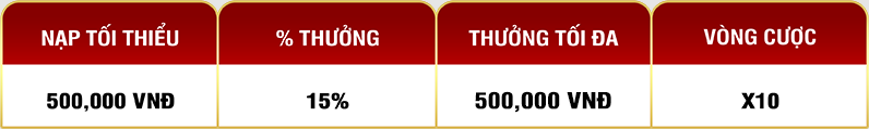 - Ví dụ bạn nạp 500,000 VND , tiền thưởng của bạn là 75,000 VND